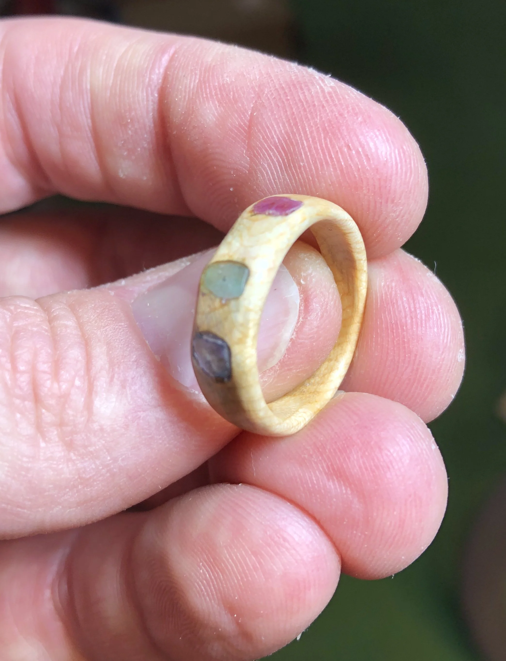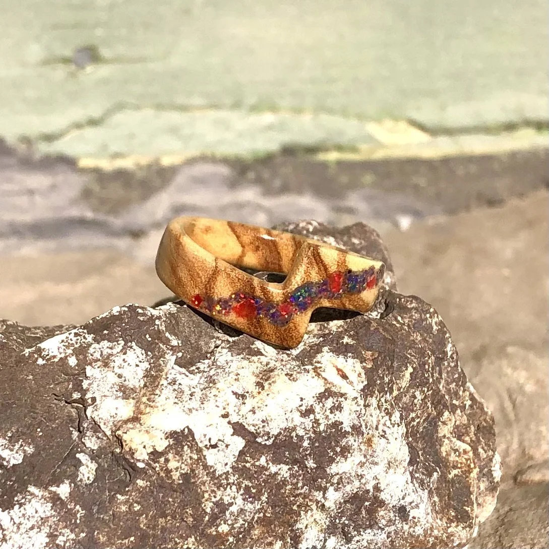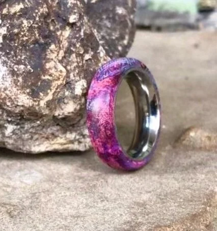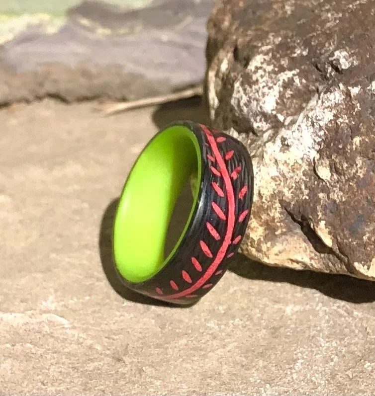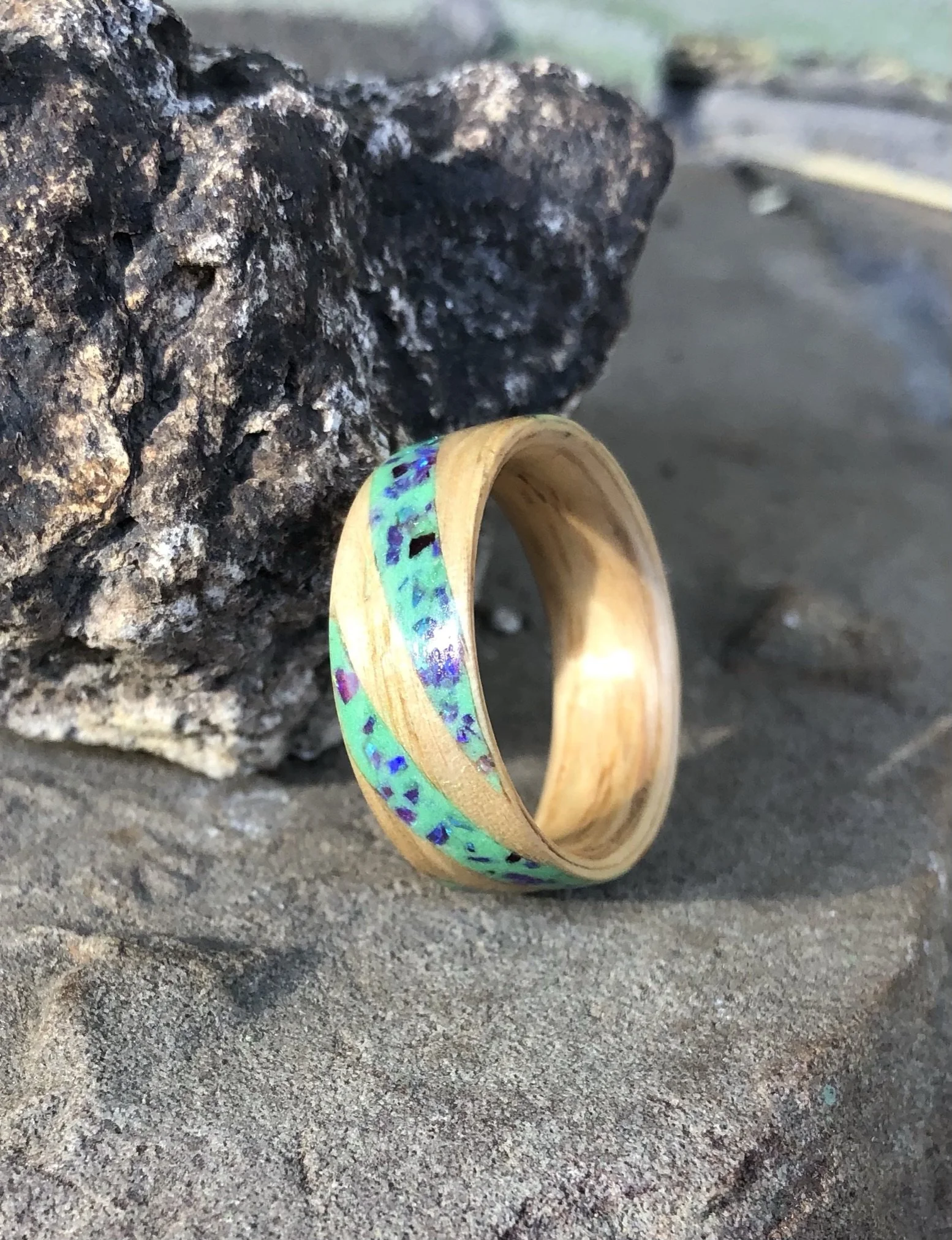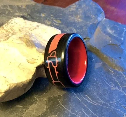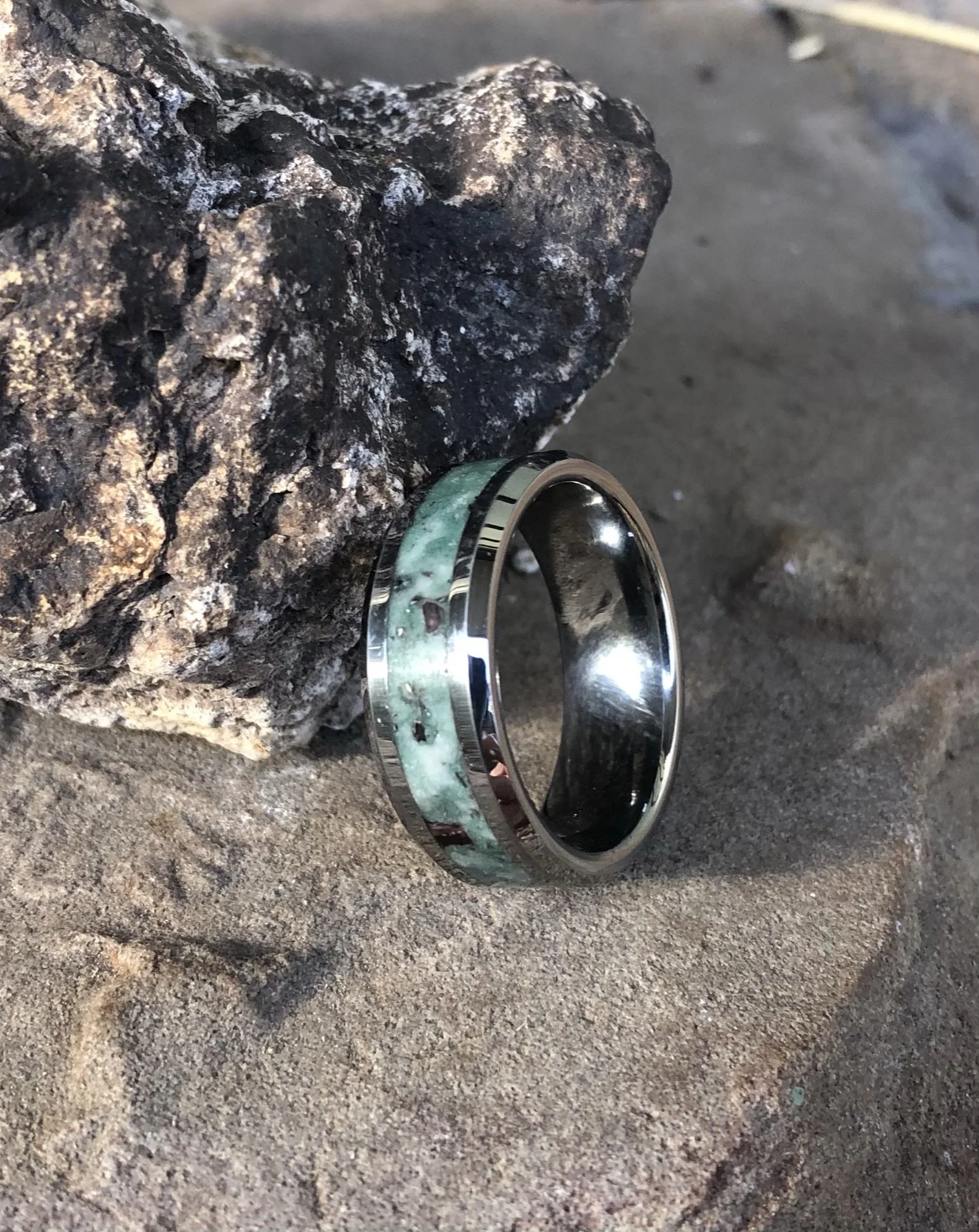 The following are examples of various styles, ring core/base and inlay materials. Options are not limited to what’s displayed here. The possibilities are virtually endless. If there is something you would like your ring made with or included as inlay in the ring, please email me .